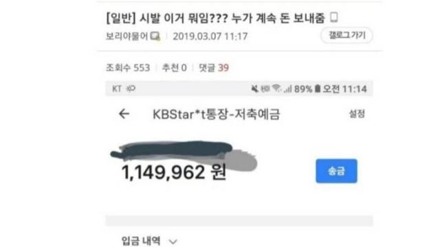 ㅅㅂ 이거 뭐냐? 누가 내 통장에 계속 돈 보내줌 ㄷㄷ