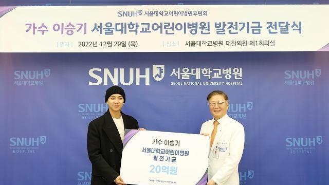 ’50억 기부 약속’ 이승기, 서울대 어린이병원에 20억 쾌척