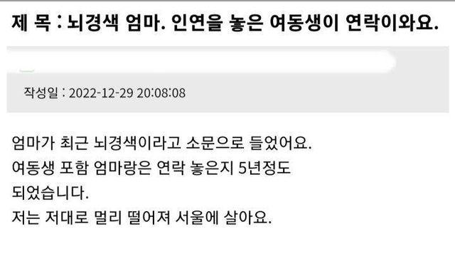 뇌경색 엄마 인연을 놓은 여동생이 연락이 와요