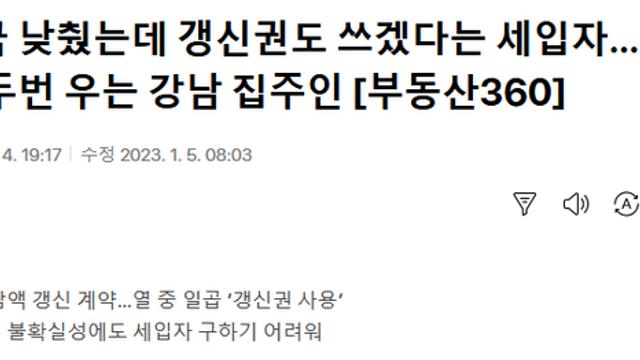 전세금 낮췄는데 갱신권도 쓰겠다는 세입자