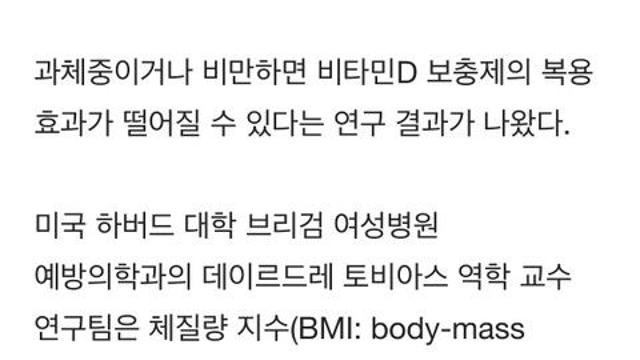 “BMI 높을수록 비타민D 효과 떨어져.