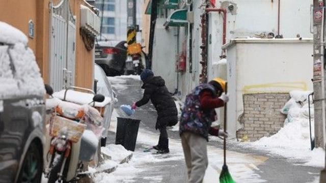 치워도 치워도 눈이 내린 26일 서울 용산구 동자동에서 시민들이 눈을 치우고 있다. 2023.1.26 박규리 금요일인 27일은 전국이 대체로 맑…