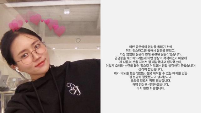인스타그램 러블리즈 출신 진이 아이돌 연애 관련 Q&A 영상이 논란이 되자 결국 삭제했다. 5일 진은 자신의 SNS 스토리를 통해 “이번 큐앤에…