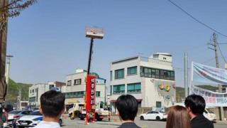 12일 오전 9시45분께 예산시장 입구에 세워진 ‘백종원 국밥 거리’ 간판이 철거되는 과정을 방문객들이 지켜보며 아쉬워하고 있다.2023.4.1…
