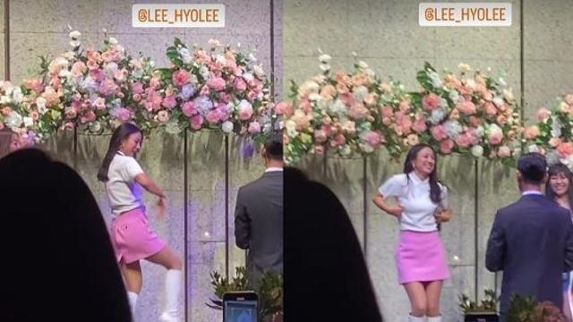 가수 이효리가 20년 동안 함께한 이근섭 이사의 결혼식에 참석해 축가를 부르는 모습이 공개됐다. 30일 패션 디자이너 요니P는 “이효리의 축가!…